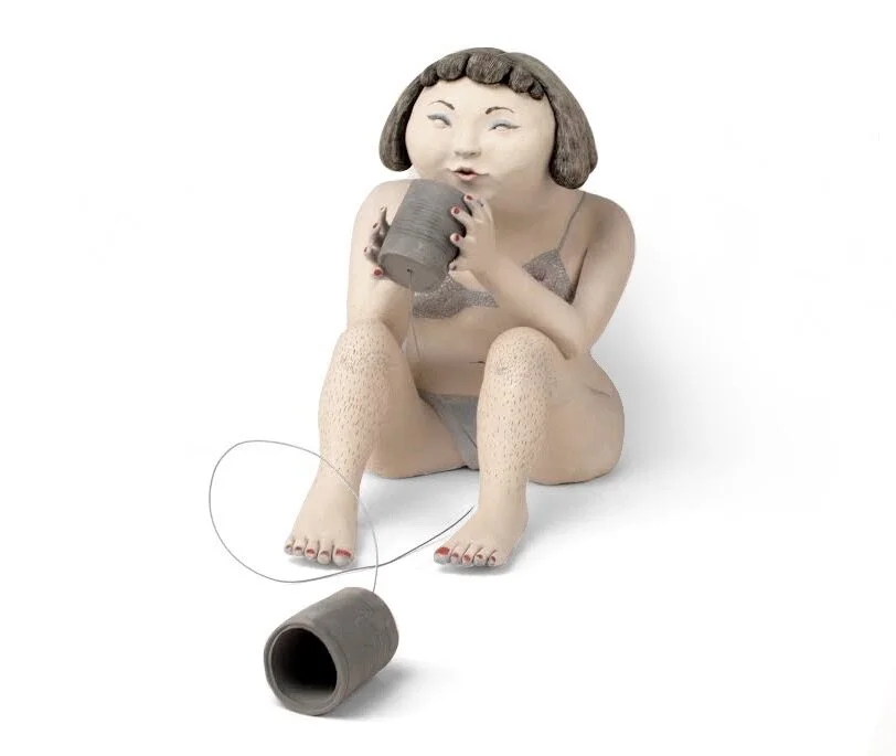 Porcelain, mason stain, underglaze, wire. Fired to cone 6.